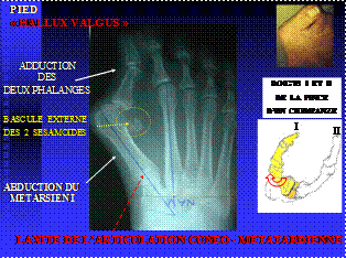 3° INSTABILITES DU 1ER RAYON DU PIED ou « Hallux Valgus », engendrées par le passage d’une fonction préhensile à une fonction d’appui du pied.